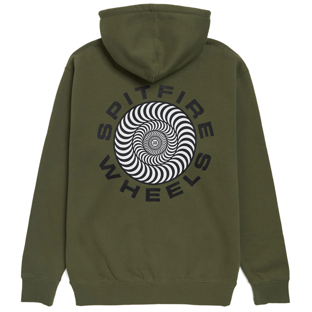 De Spitfire Classic '87 Swirl Fill Zip Up Hoodie in Army/Black/White is de perfecte hoodie voor skaters en streetwear liefhebbers die op zoek zijn naar comfort en stijl. Deze zip-up hoodie biedt de warmte en duurzaamheid die je nodig hebt tijdens koele skate sessies of casual dagen in de stad. Het opvallende Spitfire Classic '87 Swirl logo in een unieke kleurencombinatie van zwart en wit tegen een legergroene achtergrond geeft deze hoodie een herkenbare en stijlvolle look.