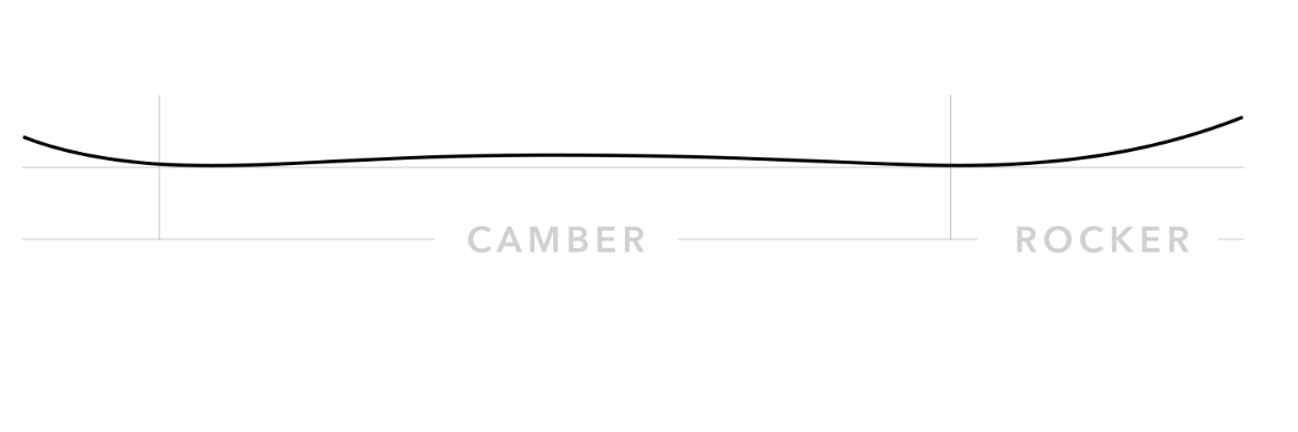 Float Camber – camber onder de voeten met early rise/rocker in de nose. Dit houdt je snelheid doorheen de bocht en geeft grip en stabiliteit op hardpack, terwijl de nose vlot omhoog komt in poeder en turns makkelijk initiëren.