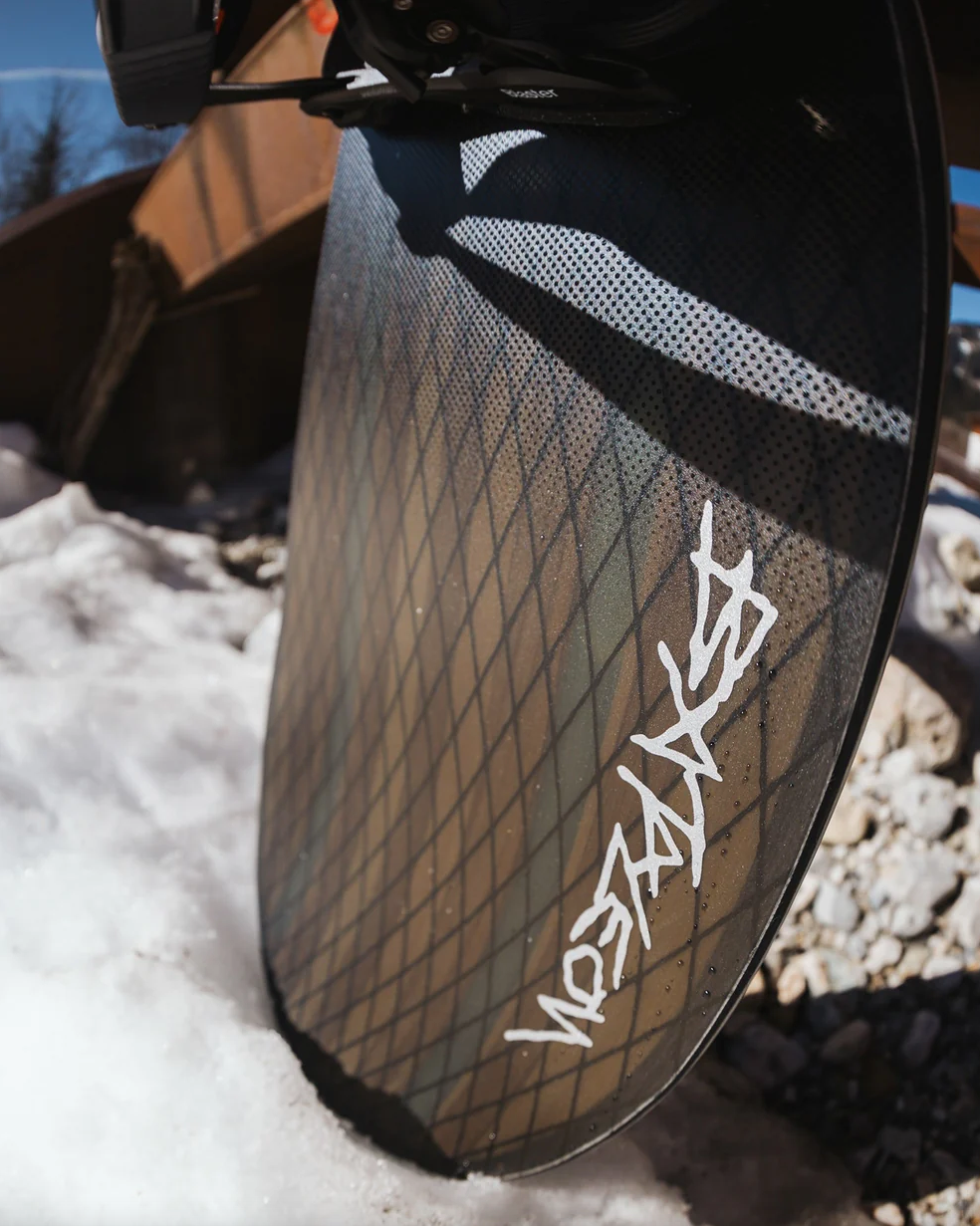 Triax Laminate - een sterke, lichte en responsieve driedelige glasvezelconstructie die het flexpatroon van agressievere snowboards verder verbetert. Deze laag bevindt zich onder de woodcore en biedt geavanceerde prestaties en torsiestijfheid.
