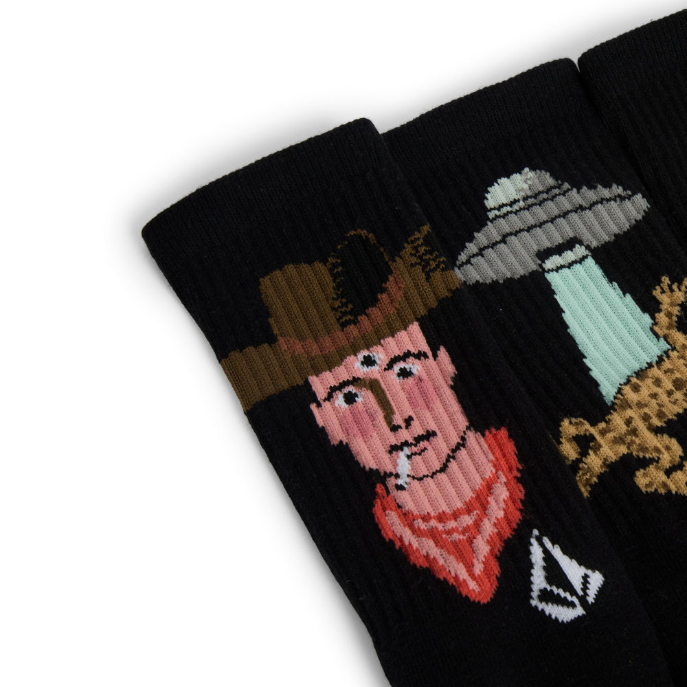 De Volcom FA Mickey Mason Socks 4 Piece Multicolor is een creatieve 4-pack met unieke Mickey Mason artwork vibes. Vier verschillende designs, één duidelijke attitude — perfect voor wie zijn outfit wil afwerken met een artist touch.