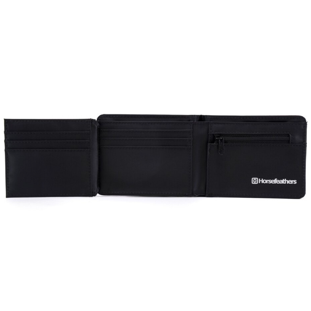 De Horsefeathers Gord Wallet Black Peak portemonnee van leer met drie panelen voor je, waarin je 2 hoofdvakken voor briefgeld, 9 kaartsleuven en een muntvak met rits vindt. Bovendien is hij versierd met een reliëfontwerp op de voorkant. Wat vind je van deze keuze?