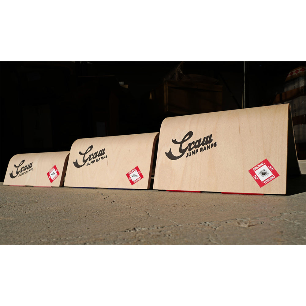 De Graw Jump Ramps werden gemaakt uit een zeer sterk en lichte beukenhout multiplex plaat van 15mm dik. Deze kickers zijn klein van formaat maar sterk van kern. Ze zijn verkrijgbaar in 3 verschillende hoogten. Dankzij hun lichte gewicht (max 4 kg) kan je ze makkelijk overal mee naar toe nemen & snel verplaatsen. Er is geen verdere installatie vereist. De rubberen pads bieden een maximum aan stabiliteit in alle omstandigheden.