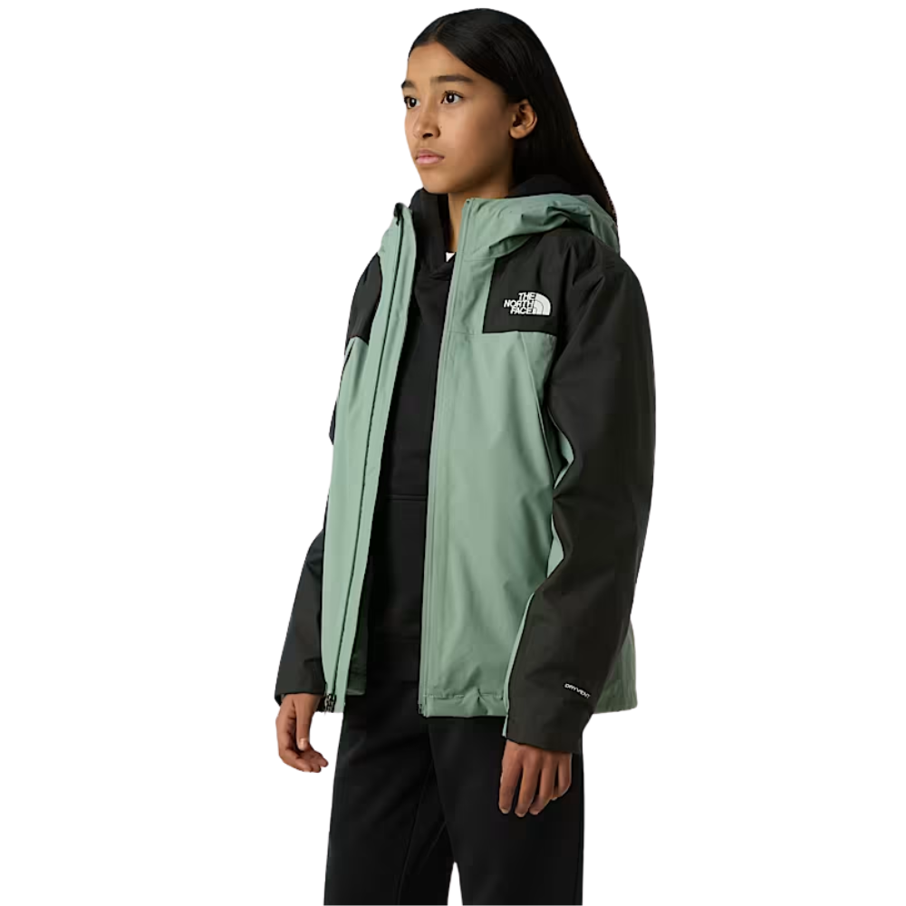 The North Face Kids Antora Triclimate Jacket Slate Moss is de slimme 3‑in‑1 jas die je kind droog, warm en flexibel houdt — of het nu gietregent, sneeuwt of gewoon wat fris is buiten.