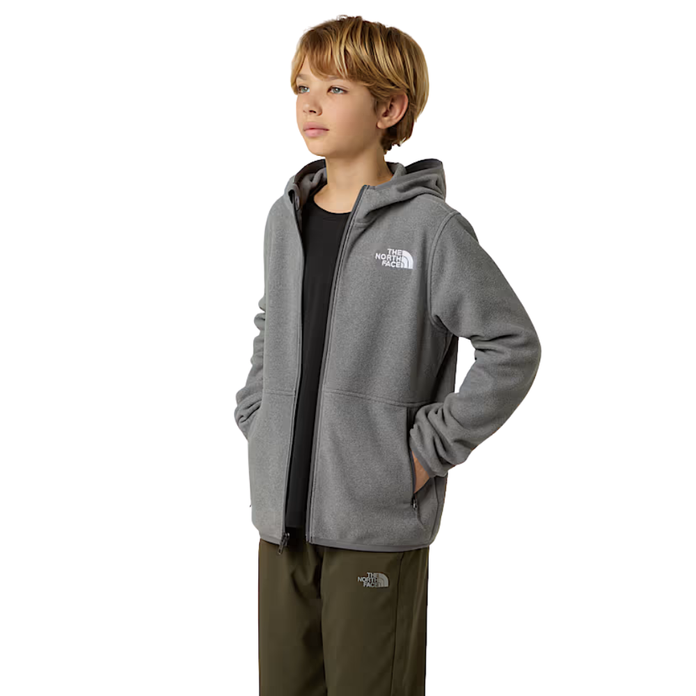 De The North Face Kids Glacier Full Zip Fleece Jacket in Mid Grey Heather is een super veelzijdige fleece voor jonge avonturiers — ideaal voor schooldagen, bosuitstapjes of winterse wandelingen.