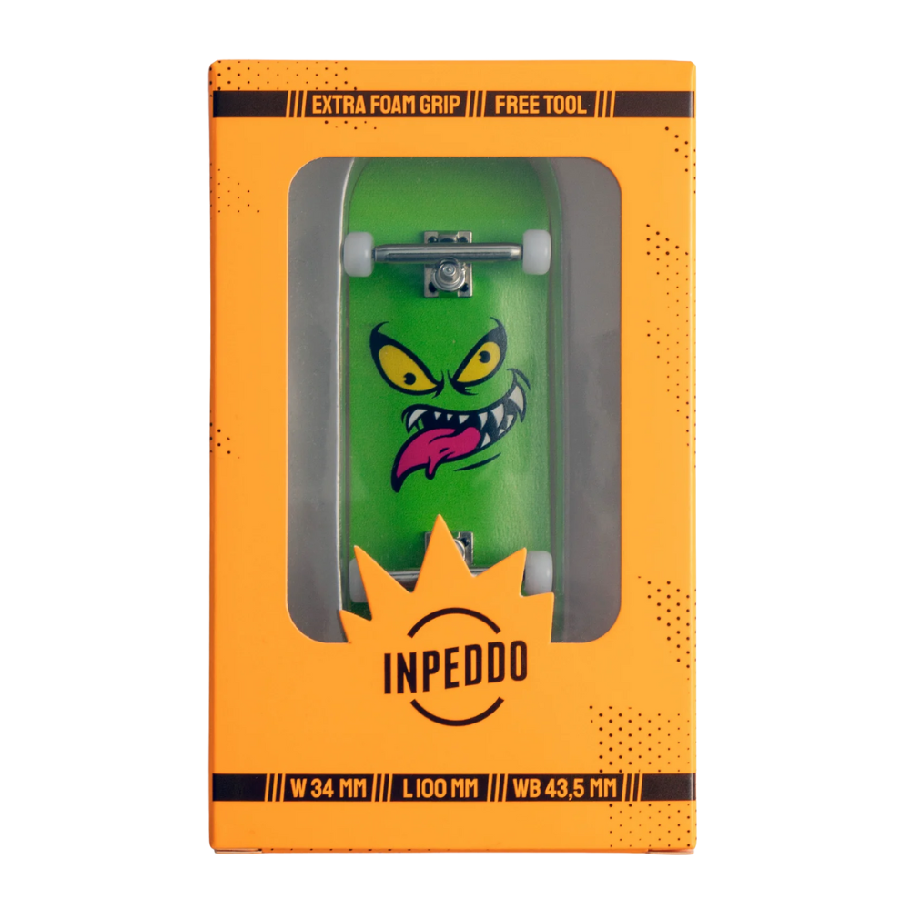 Het Inpeddo 3rd Gen Green Monster Fingerboard is ideaal om je nieuwste tricks uit te proberen. Deze complete set zet je zelf in elkaar en is voorzien van een geweldige Inpeddo Fingerboards graphic.