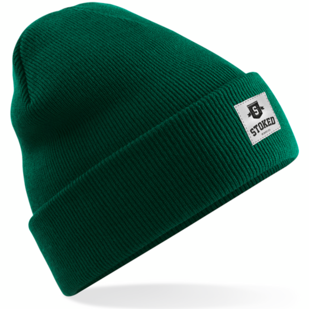 De Stoked Original Cuffed Shield Beanie Bottle Green is een awesome pure boarder style beanie. Deze heeft een Bottle Green kleur, zodat jij in stijl de straat of bergen kan trotseren. De dubbele laag breiwerk en 100% acryl stof houden jou warm. Laat zien dat je een boarder bent en represent de Stoked vibe.