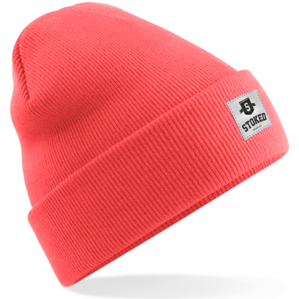 Stoked Board Co Original Cuffed Shield Beanie Coral