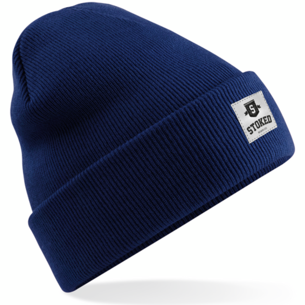 De Stoked Original Cuffed Shield Beanie Oxford Navy is een awesome pure boarder style beanie. Deze heeft een Oxford Navy kleur, zodat jij in stijl de straat of bergen kan trotseren. De dubbele laag breiwerk en 100% acryl stof houden jou warm. Laat zien dat je een boarder bent en represent de Stoked vibe.