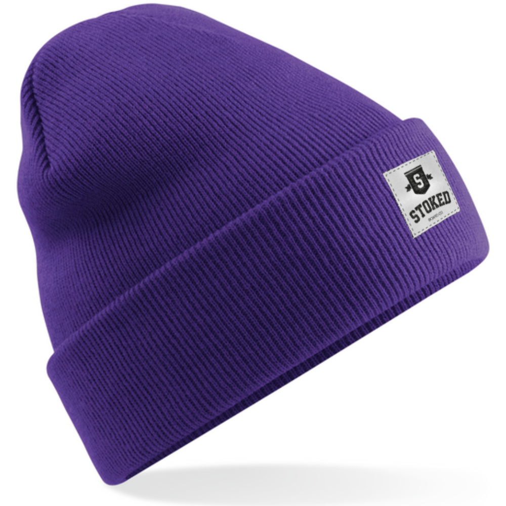 Stoked Board Co Original Cuffed Shield Beanie Purple