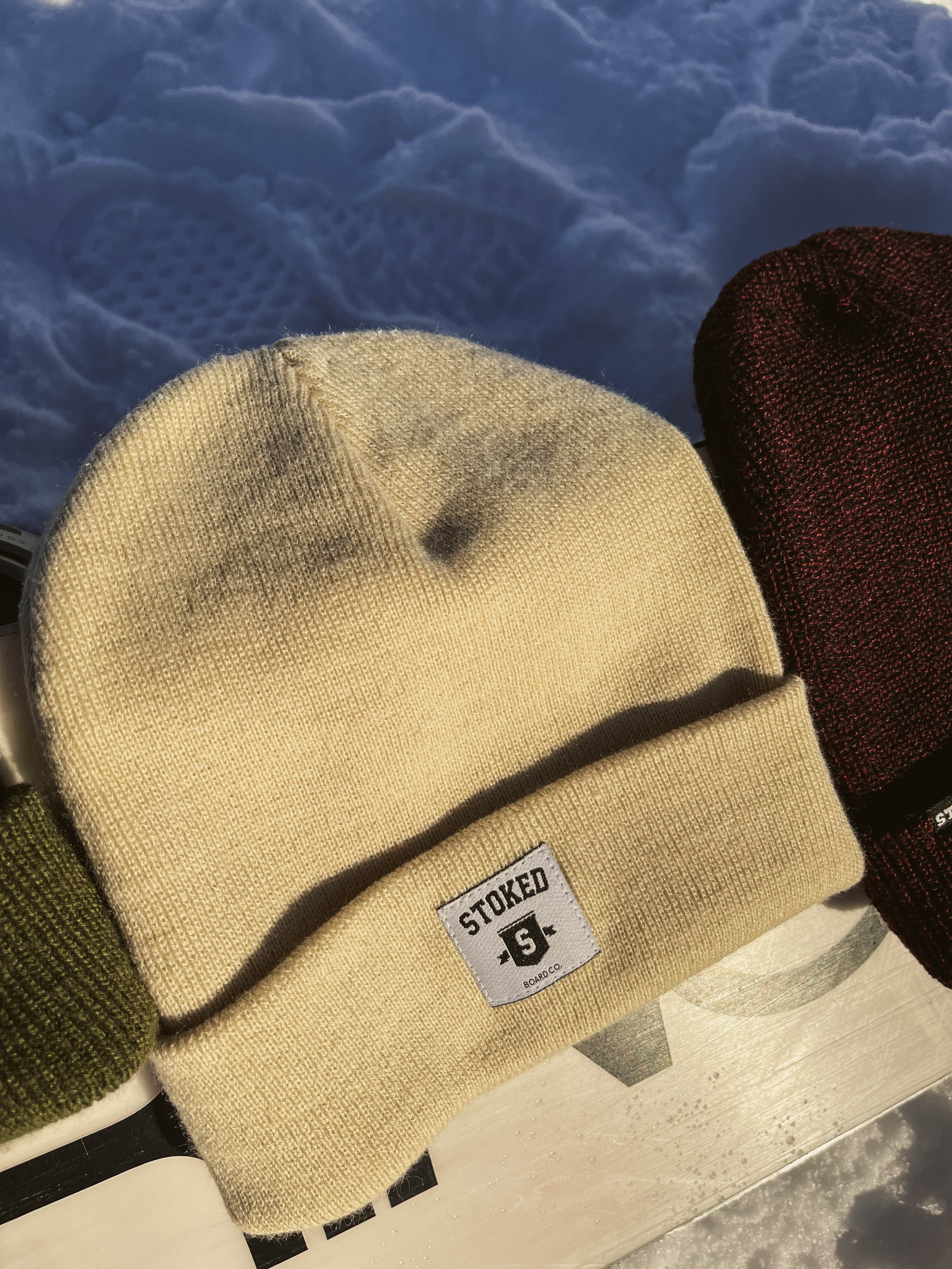 Stoked Board Co Original Cuffed Shield Beanie Sand