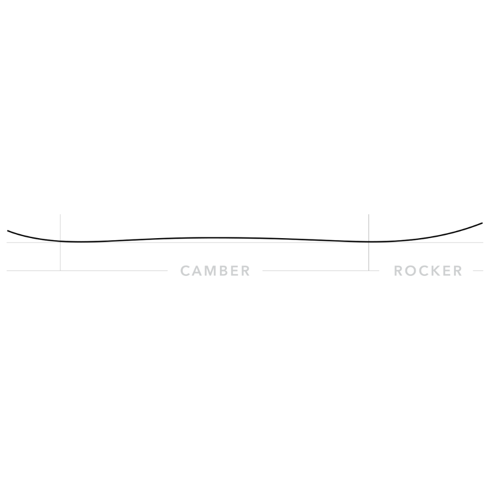 Float Camber – camber onder je voeten met rocker/early rise in de nose. Veel snelheid en grip op harde piste, met extra drijfvermogen en makkelijke turn-initiatie in diepere sneeuw.