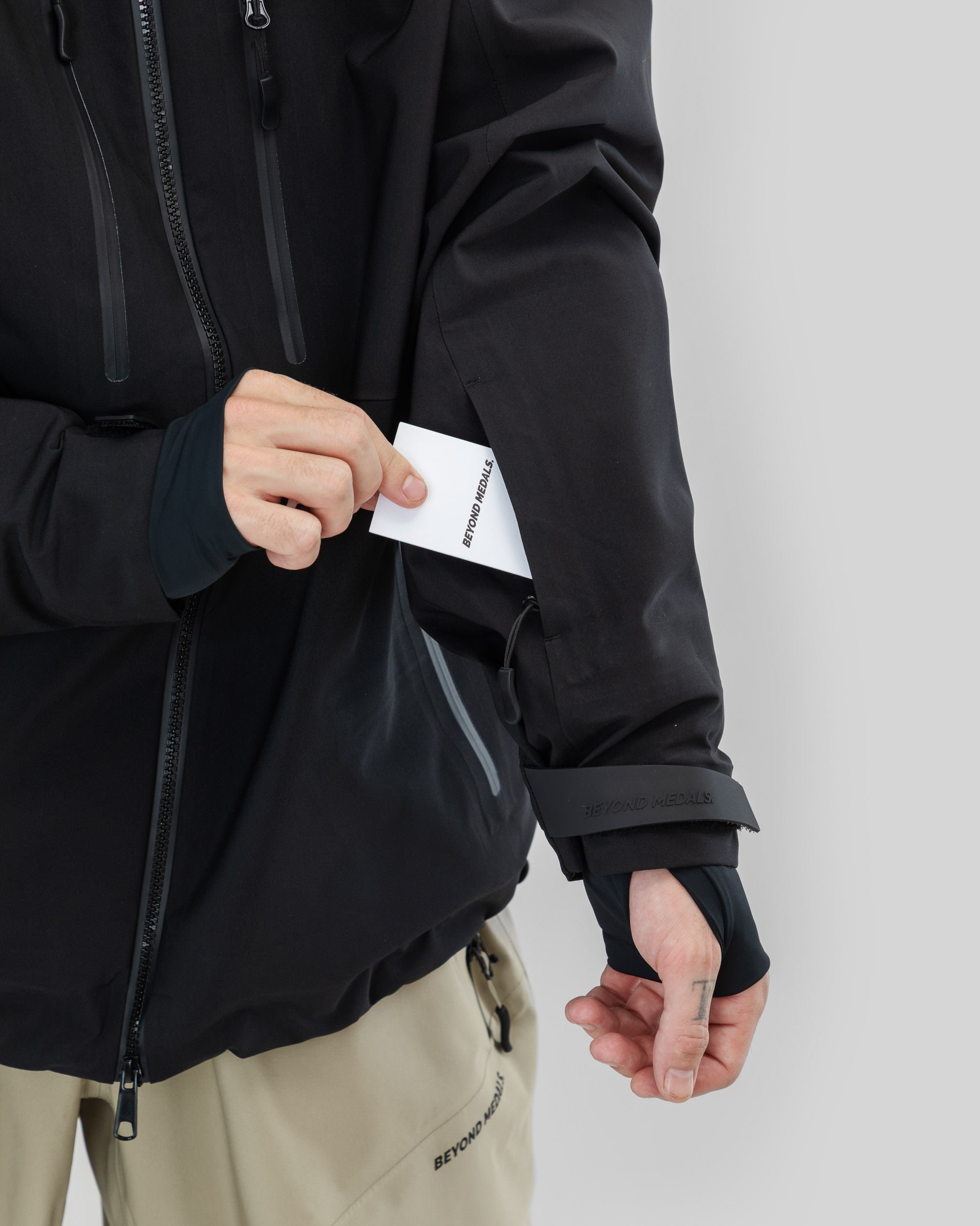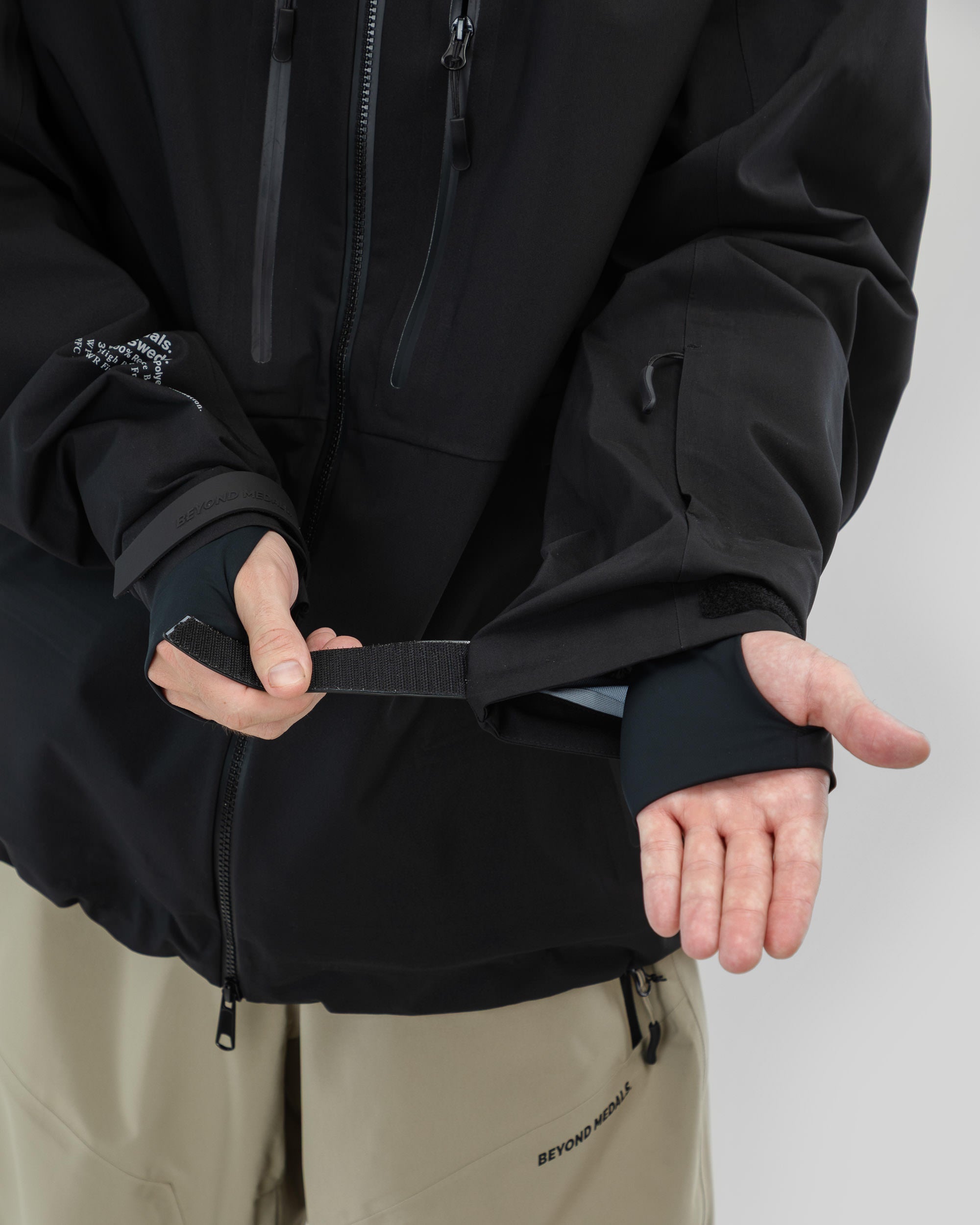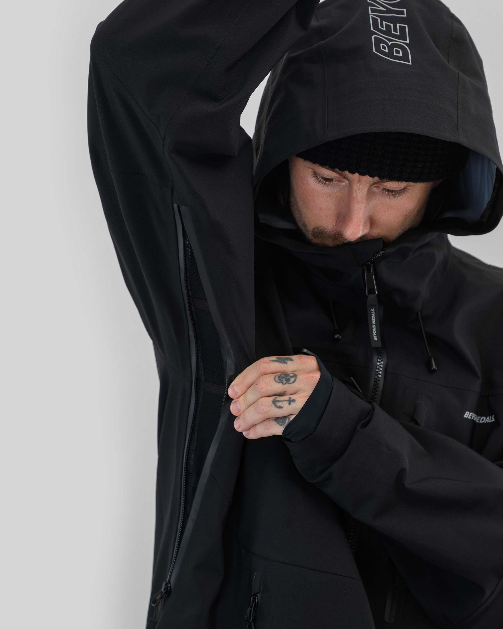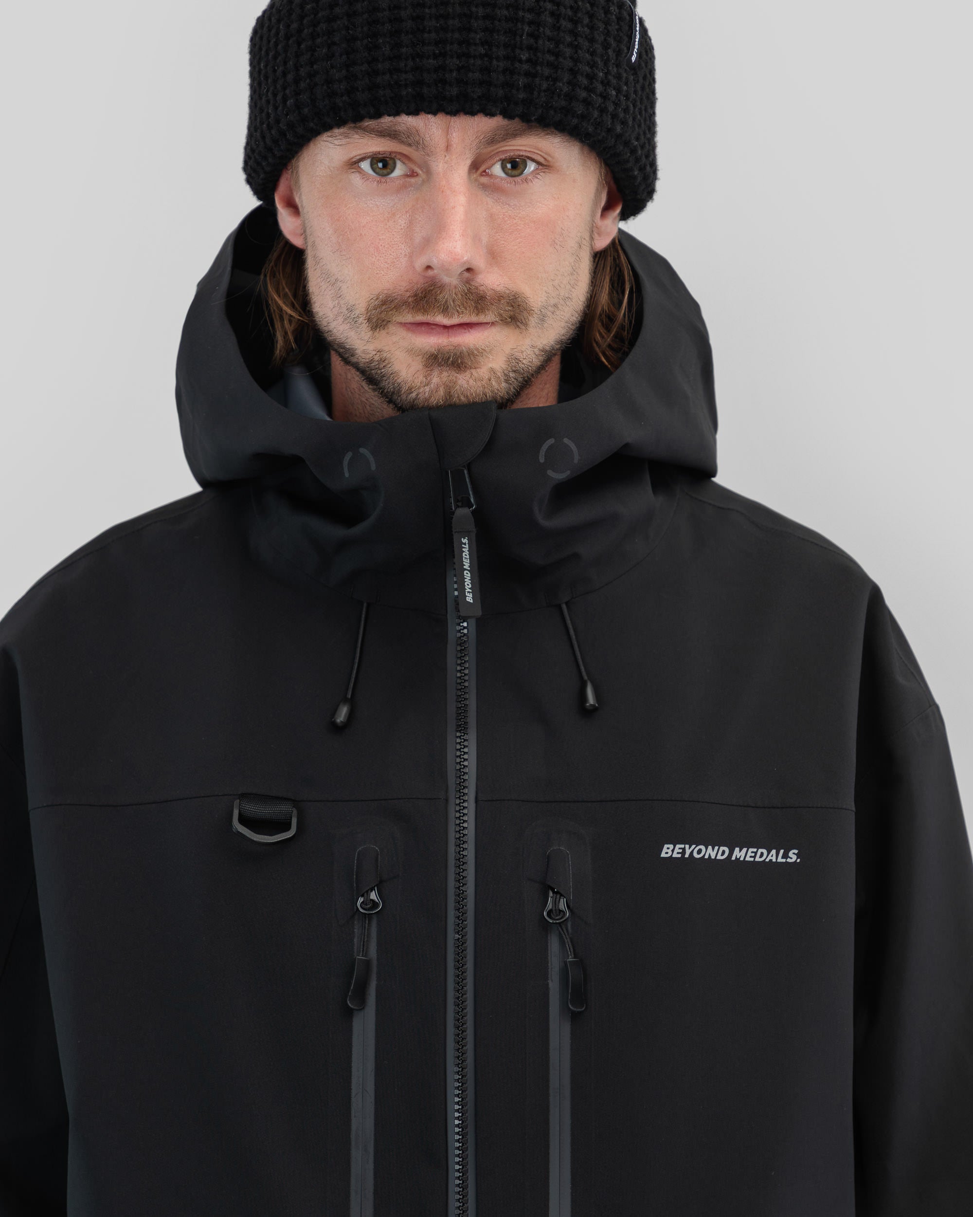 De Beyond Medals Pro Tech Jacket 3L Black is een 3-laagse shelljas, ontworpen voor de zwaarste omstandigheden. Gemaakt van 100% gerecycled polyester, biedt hij een waterdichtheid van 20.000 mm, PFC-vrije DWR, volledig getapete naden en waterdichte ritsen voor volledige bescherming. Tors favoriete jas, gecombineerd met verschillende laagjes, afhankelijk van de omstandigheden.