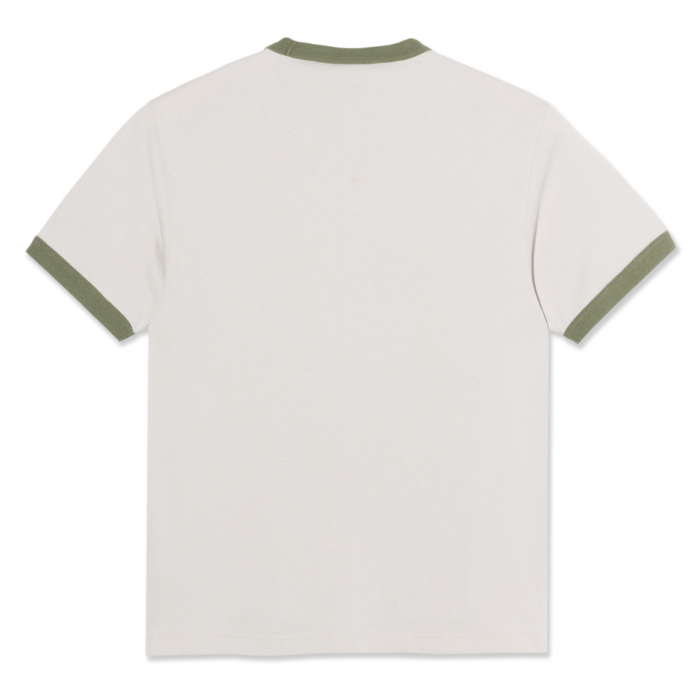 De Polar Ringer T-Shirt Pale Taupe / Army Green is een clean classic met een retro edge. De contrasterende hals en mouwboorden in Army Green geven deze tee die herkenbare ringer look, terwijl de Pale Taupe basis zorgt voor een subtiele, stijlvolle vibe.
