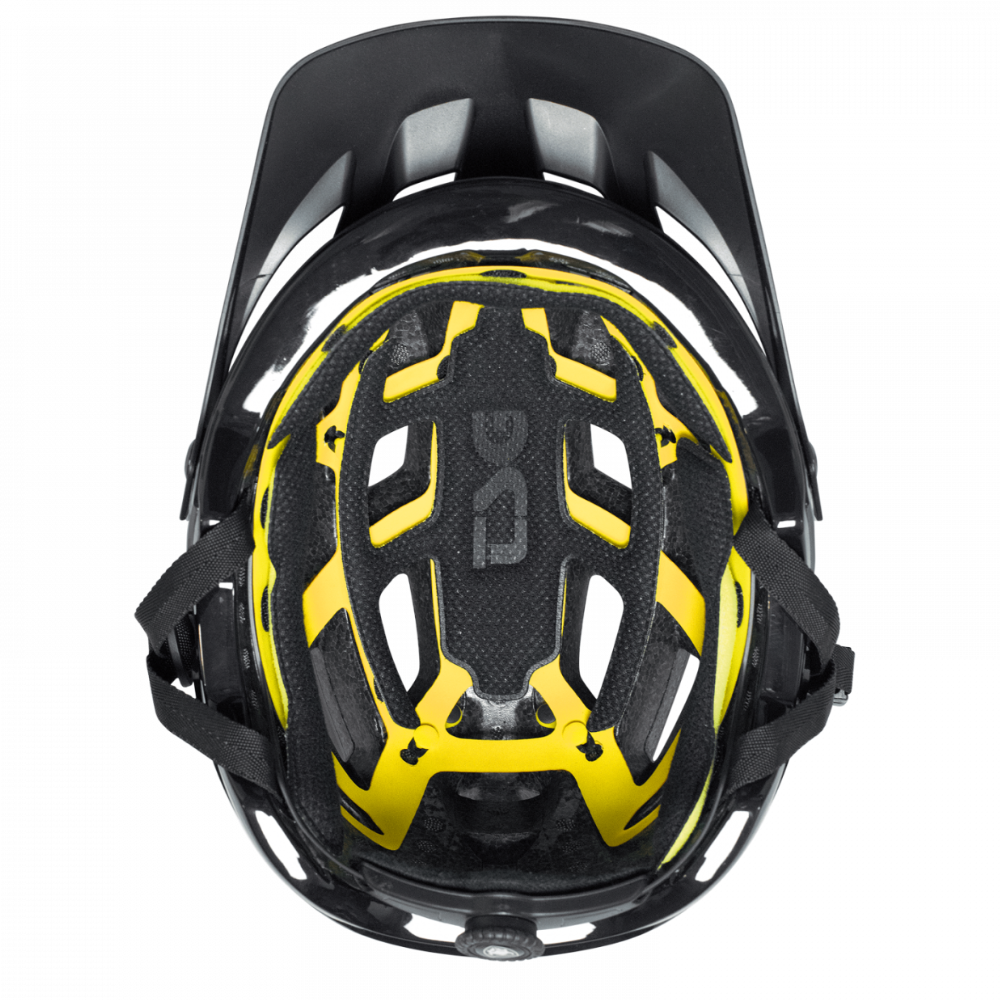 • MIPS Beschermingssysteem: Een lage wrijvingslaag binnenin de helm laat het hoofd relatief roteren ten opzichte van de helm bij een schuine impact, wat rotatiegeweld en potentiële hersenschade vermindert.