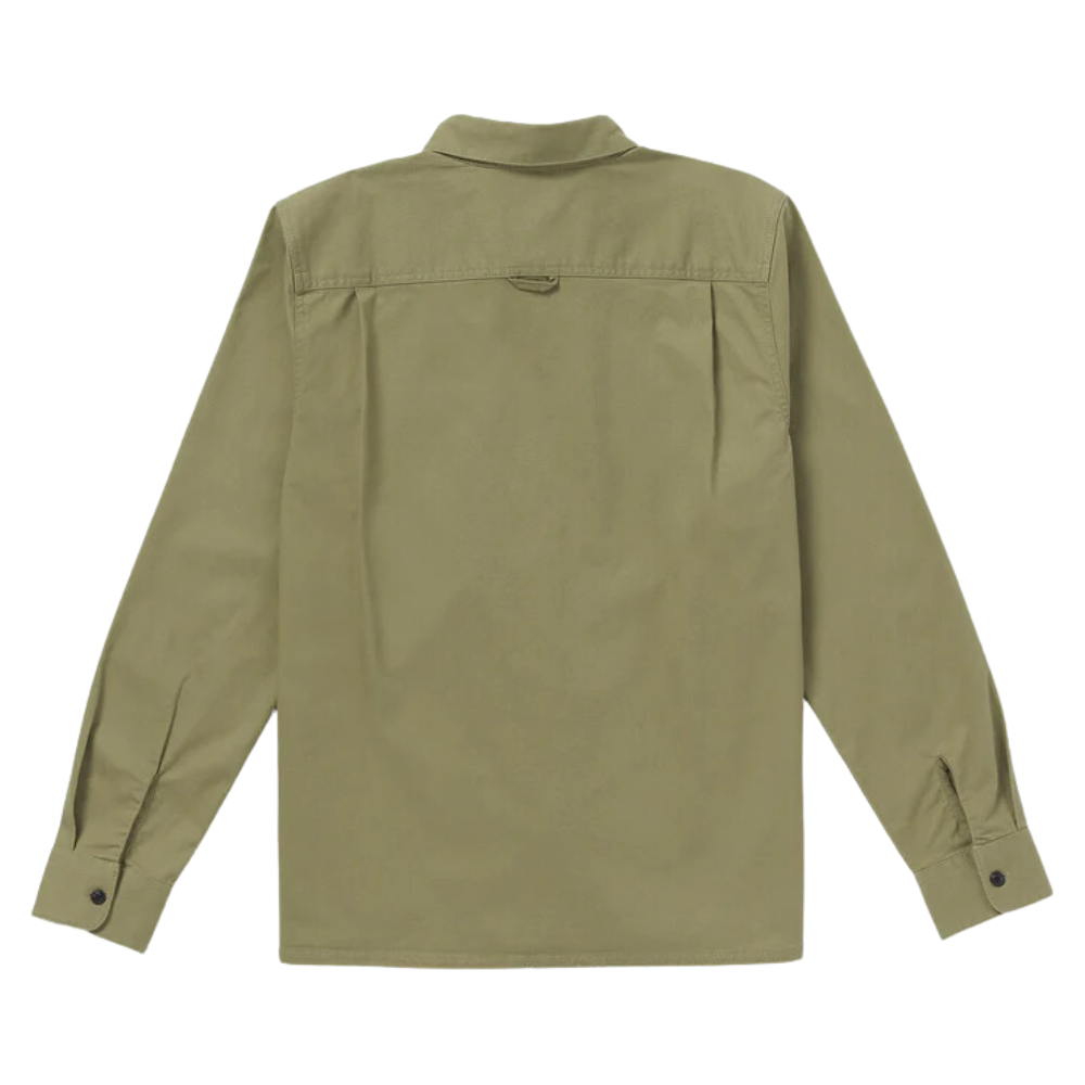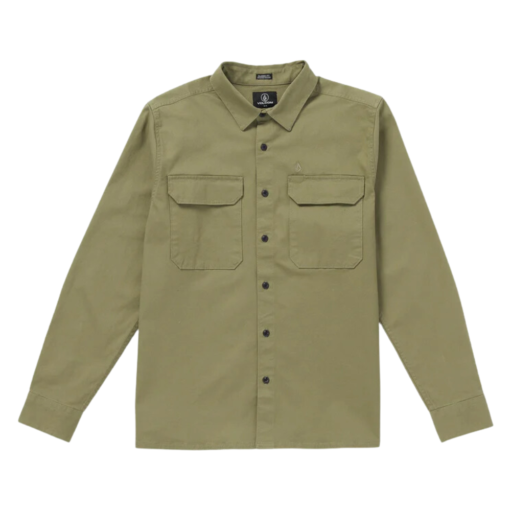 De Volcom Servicestone Workshirt Long Sleeve Shirt - Thyme Green is de perfecte combinatie van robuustheid en stijl. Dit werkshirt met lange mouwen is gemaakt van een duurzame katoen-elastaan twill-weave, wat zorgt voor comfort en bewegingsvrijheid. De klassieke pasvorm, dubbele borstzakken met verborgen drukknoopsluiting, en het iconische Volcom stone-logo boven de linkerborstzak maken dit een veelzijdig en functioneel item. Of je nu aan het werk bent of ontspant, dit shirt biedt betrouwbare prestaties en een tijdloze uitstraling.
