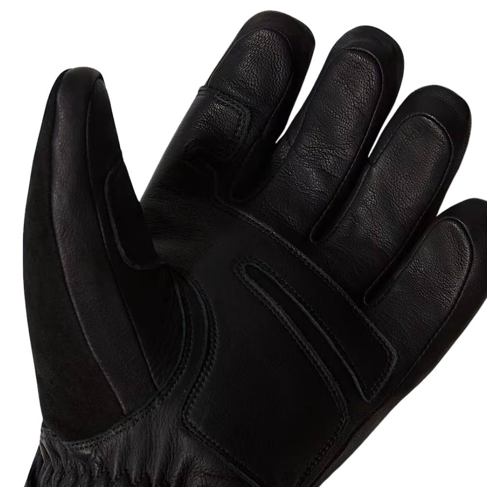 Buitenzijde van soepel, slijtvast geitenleer — sterk genoeg voor ruwe omstandigheden, gripvast bij ski’s, stokken of uitrusting.
