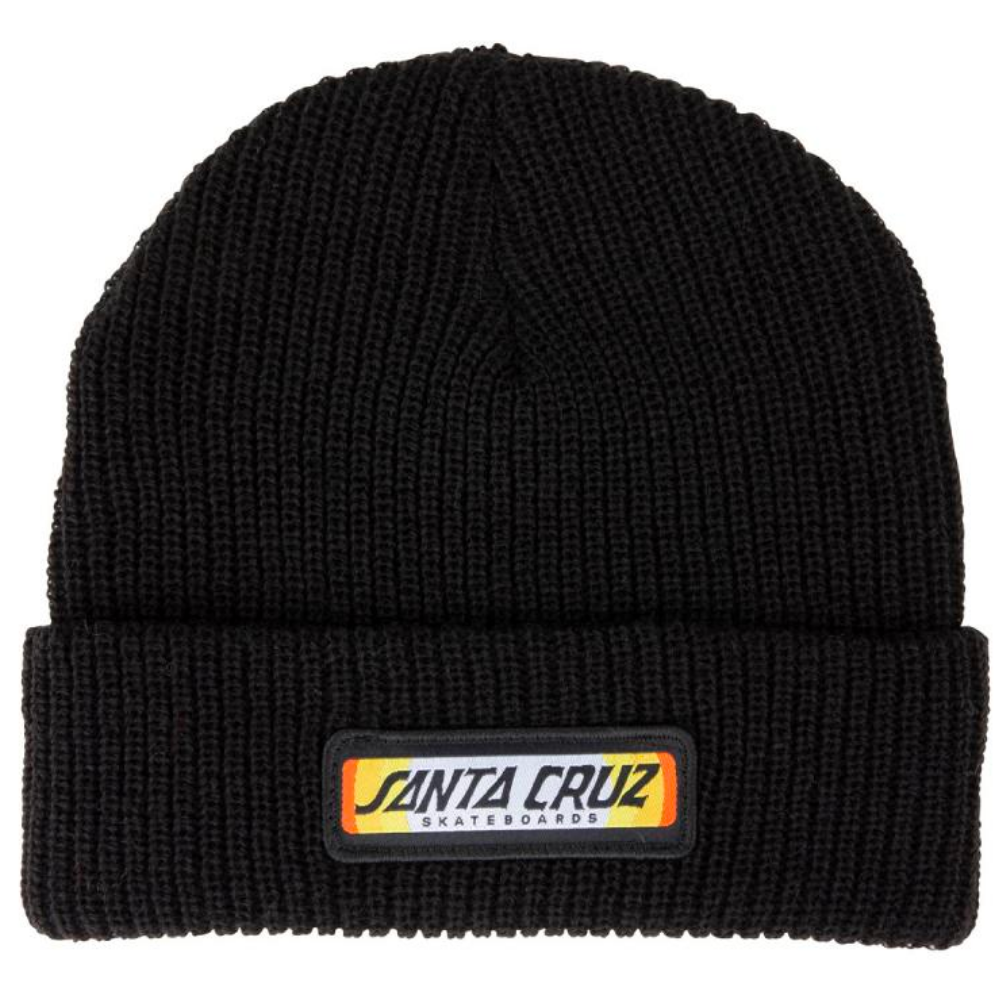 De Santa Cruz Sundown Ray Strip Beanie in Black is een lichtgewicht, losgebreide beanie die perfect is voor koud weer. Het is gemaakt van 100% acryl voor warmte en duurzaamheid, en is voorzien van een omslag en een geweven badge aan de voorkant voor extra stijl.
