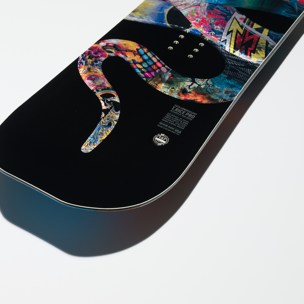 De Lib Tech T.Rice Pro is het resultaat van twee decennia progressie en precisie, rechtstreeks uit het brein van Travis Rice. Ontworpen in Jackson Hole, getest over de hele wereld en uitgevoerd in de krachtige, milieuvriendelijke HP-constructie, is dit dé freestyle twin voor riders die alles willen rijden — van park tot pow. Speels genoeg als daily driver, maar stevig en responsief genoeg om grenzen te verleggen op snelheid, grote kickers of technische lijnen. Deze 20-jarig jubileumeditie viert de evolutie van een legende, met art van een epische crew van kunstenaars die de T.Rice Pro door de jaren heen hebben vormgegeven.