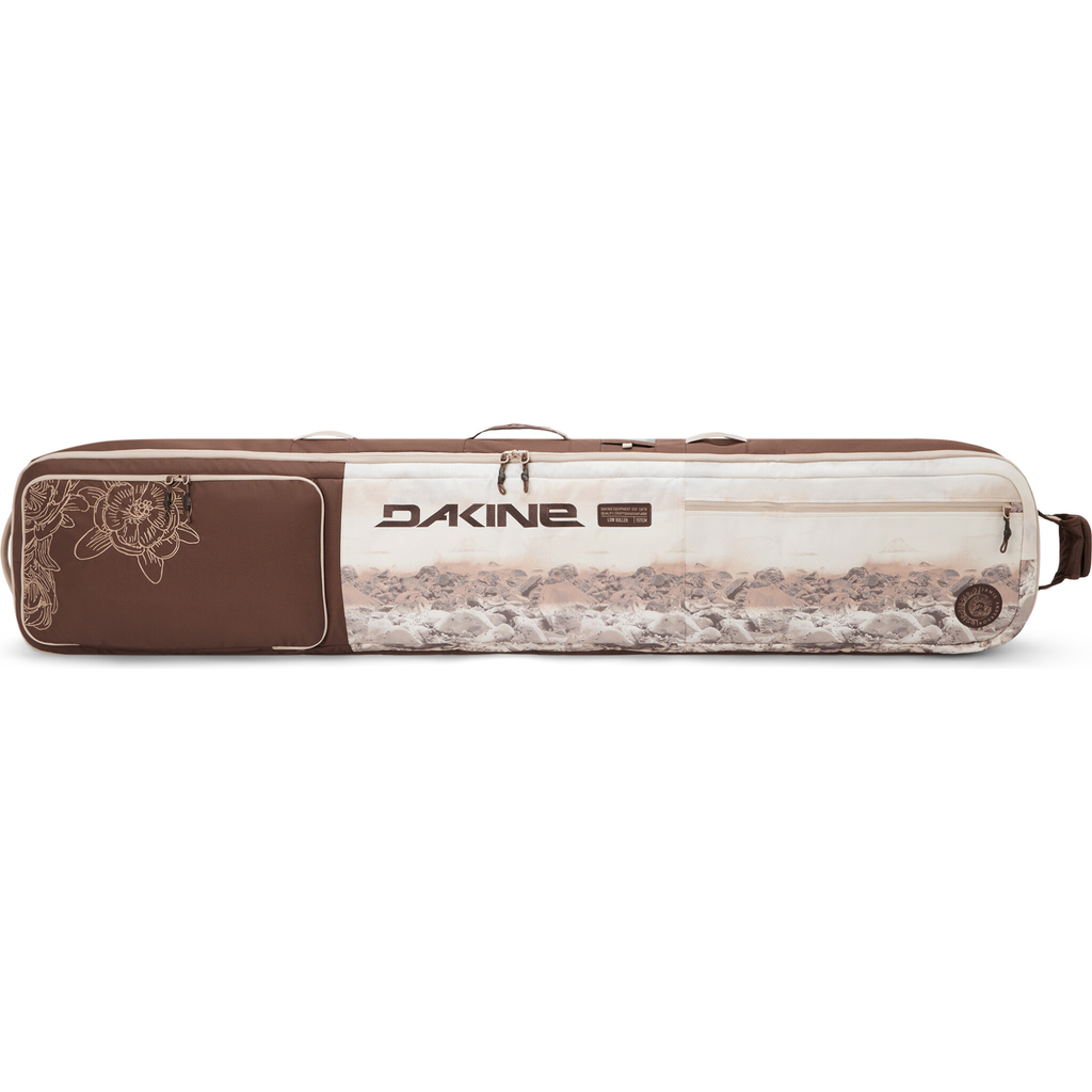 De Dakine Low Roller Snowboard Bag - Anderson Sunset is dé keuze voor snowboarders die op pad gaan, of het nu voor een weekendje weg of een langere reis is. Deze tas biedt 360-graden bescherming met voering, zodat je board(s), laarzen en kleding veilig opgeborgen blijven. Het hoofdvak biedt ruimte voor één snowboard met gemonteerde bindingen, of twee snowboards met bindingen verwijderd, plus een afneembare bootsbag. Het externe ritsvak houdt essentials zoals tools en accessoires binnen handbereik. De tas heeft een handige eindhandgreep die je kunt combineren met een trolley, en de duurzame urethaanwielen zorgen voor moeiteloos rollen door terminals en parkeerplaatsen.