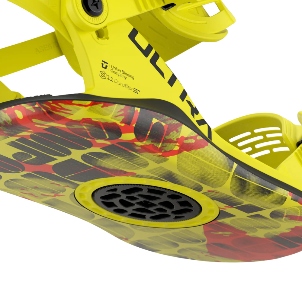 6/10 — Union Ultra Yellow is een snowboardbinding met medium flex. Dit is het meeste all-round type binding voor snowboarders die ervan houden om op en naast de piste snel te gaan of in het snowpark jumps, rails en boxen te rijden. Met deze flex geniet je van directe krachtoverbrenging.