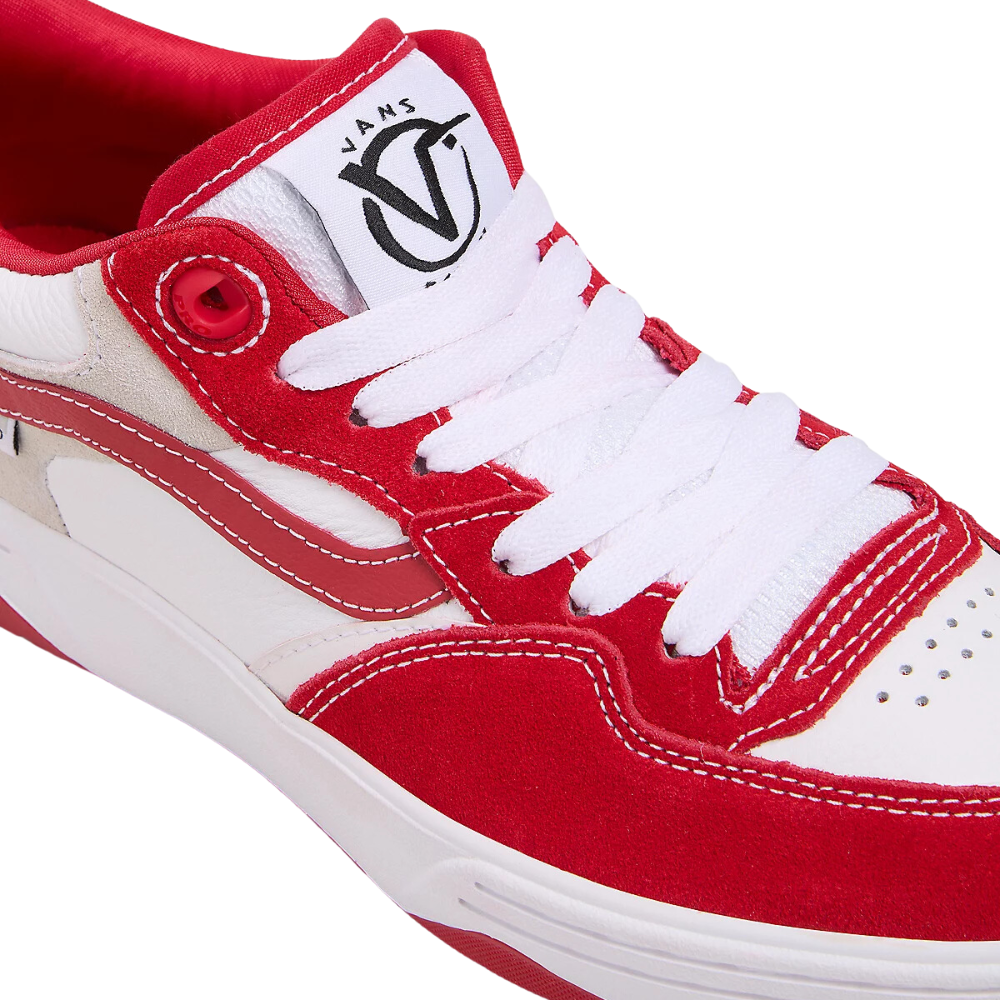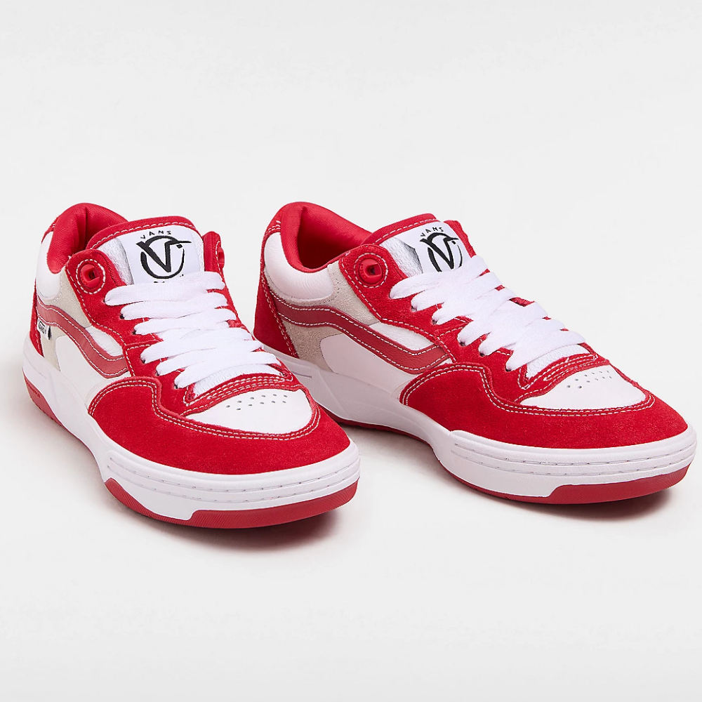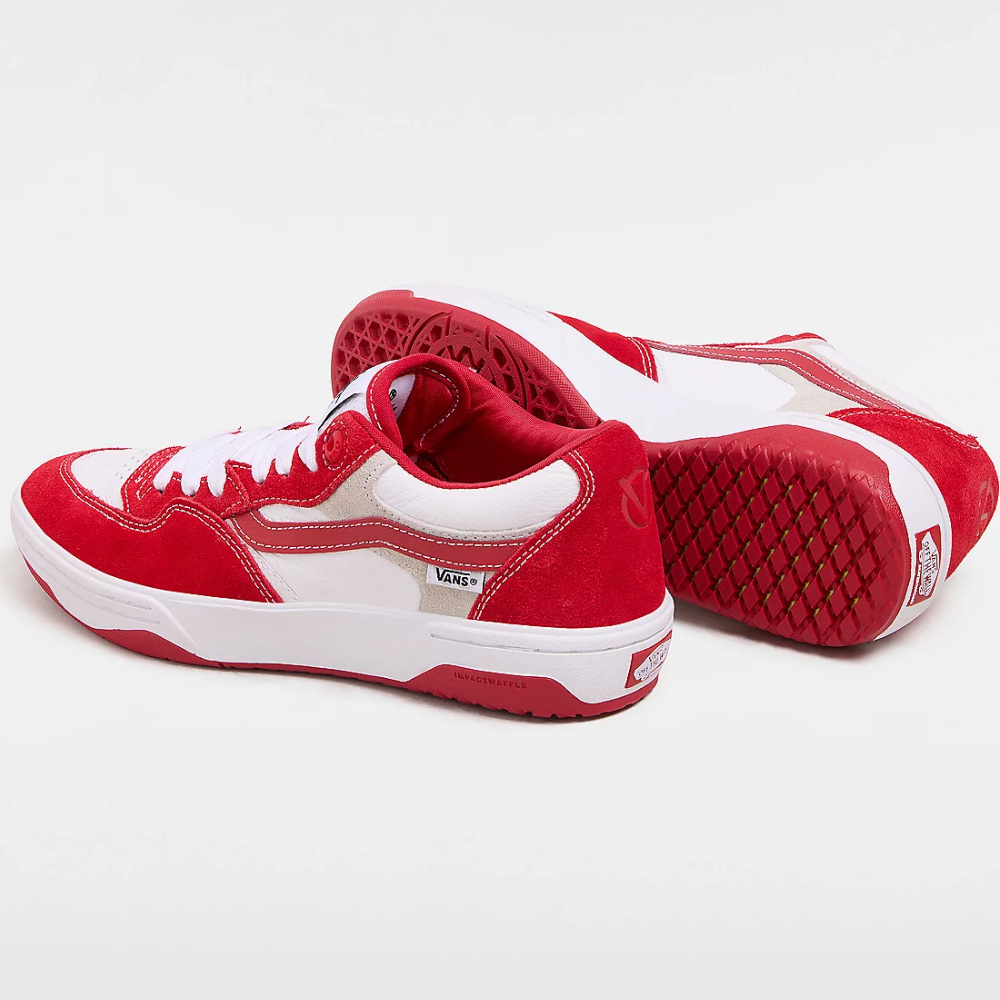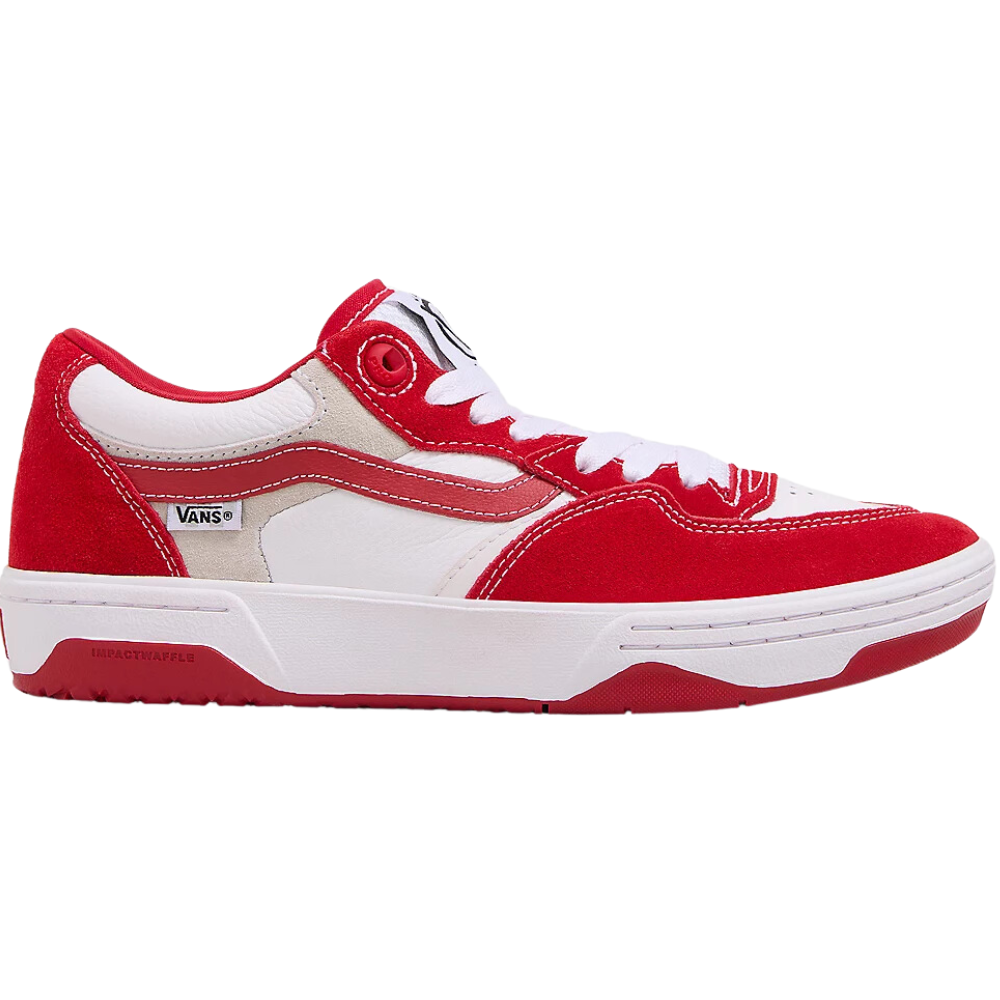 De Vans Rowan 2 Red/White is geïnspireerd op vintage shoes en is gebouwd met ImpactWaffle-technologie: een combinatie van Vans' impactdemping met dubbele dichtheid en SickStick-rubber, die uitzonderlijke impactbescherming biedt zonder in te boeten aan boardfeel.