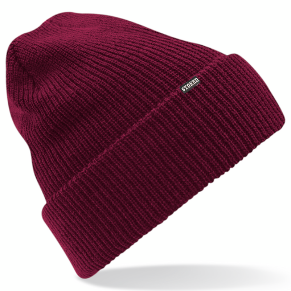 De Stoked Huntsman Beanie Burgundy heeft een eigen stijl. Met het iconishe Stoked Board Co text logo weet iedereen direct waar jij voor staat. Zowel in de sneeuw als in de streets houdt hij je lekker warm dankzij het dubbele gelaagde breiwerk. Represent de ultieme stoked vibe en toon dat je een boarder bent dat uit het juiste hout is gesneden met deze Stoked Vintage beanie.