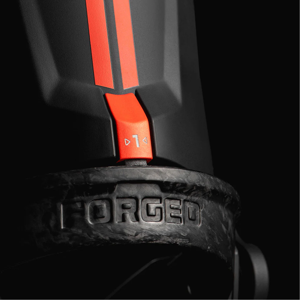 De forged carbon heelcup, geïnspireerd door Lamborghini’s automotive engineering, levert maximale krachtsoverbrenging met minimaal gewicht.