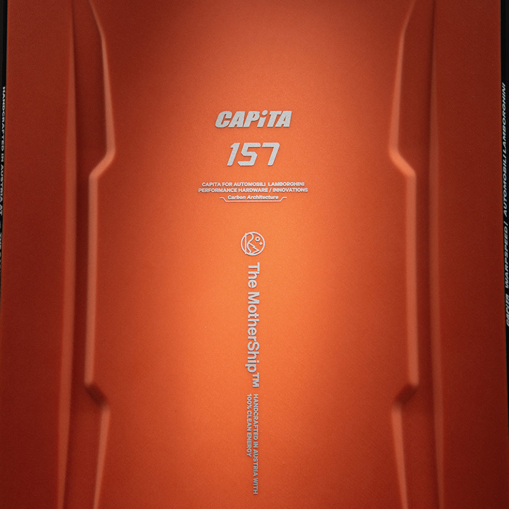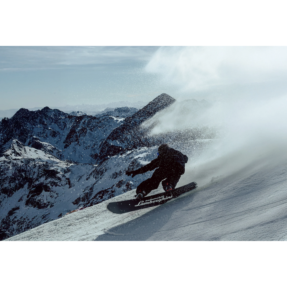 De Capita Warpspeed Automobili Lamborghini Snowboard x Automobili Lamborghini Bindings Set is geen merchandising stunt. Dit is pure engineering op sneeuw, gebouwd met dezelfde filosofie als een Lamborghini supercar: maximale snelheid, compromisloze precisie en totale controle. Elk detail van deze gelimiteerde set is ontworpen om één ding te doen: harder, sneller en stabieler rijden dan alles wat je ooit onder je voeten had.